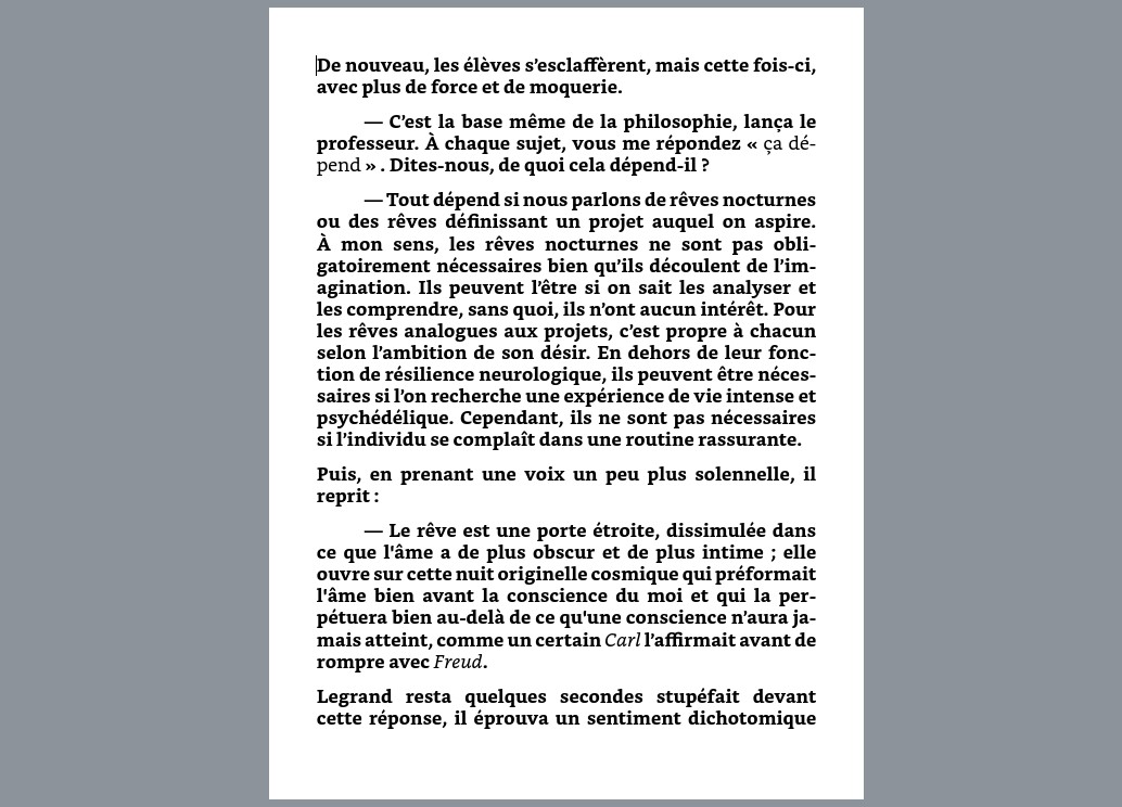 Chaque projet est traité avec minutie, sans automatisation (Sans IA donc…), afin que votre texte soit mis en valeur dans un format fluide et agréable à lire.